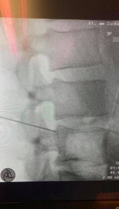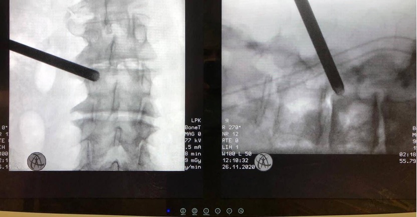 Мы применили малоинвазивное трансфораминальное эндоскопическое лечение и с помощью одномиллимитрового разреза удалили пролапс диска. Таким образом мы избежали нарушения спинного мозга, и после вмешательства не образовались ни рубцовая ткань ни инфекция.