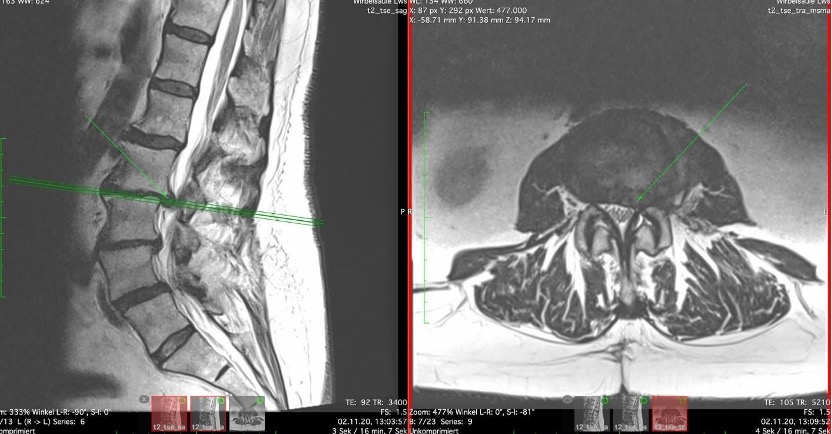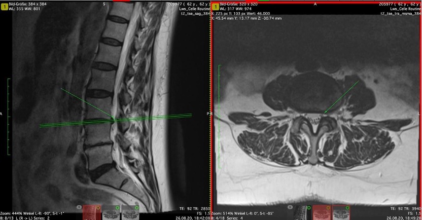 МРТ выяснило, что причиной проблем была интрафораминальная грыжа диска. Пациенту мы однозначно рекомендовали малоинвазивный  эндоскопический метод лечения. Операция прошла успешно, и все неврологические симптомы, включая боль, сразу же исчезли.