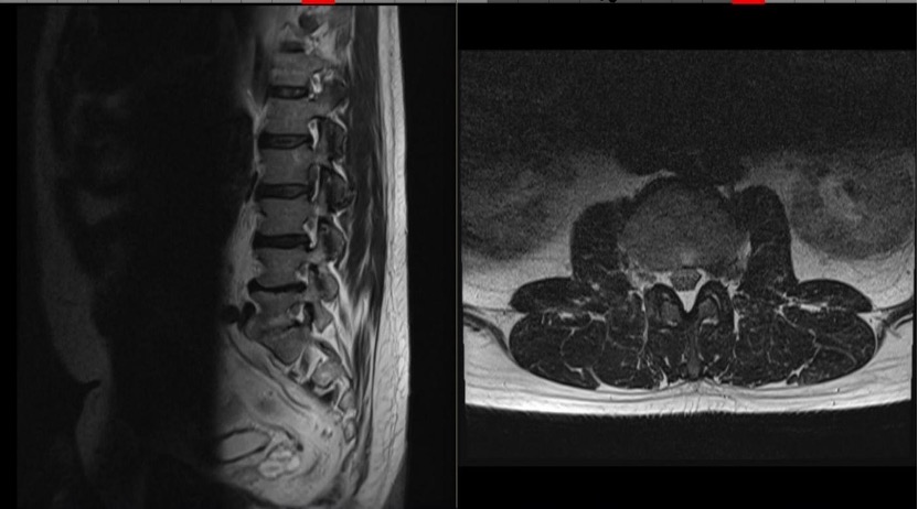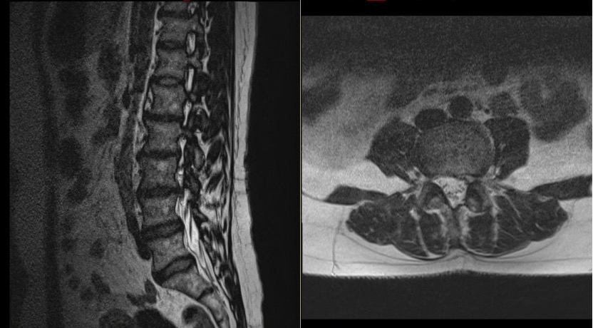 Пациенту неожиданно стреляла острая боль в левом бедре, из-за которой почти не мог ходить. А когда пытался пройти хотя бы пару шагов, ему приходилось держать тело в наклоненном состоянии. Во время неврологического обследования пациент показывал потерю чувствительности в области левого дерматома L2 и слабость левого бедра.